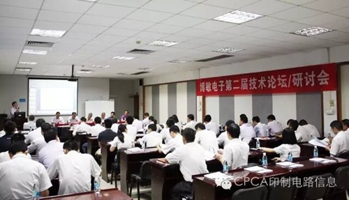 下午的研討會更是將技術論壇推向高潮。楊興全高工做了《說說我對創(chuàng)新的認識》、梁志立高工做了《高頻微波印制板綜合概述》、祝大同高工做了《高頻微波PCB及其基板材料的新發(fā)展》和楊維生高工做了《微波板制作體驗及難點解析》4篇報告。他們分別從不同角度、不同方向和側(cè)重點講述了研發(fā)創(chuàng)新重要性和“高頻、微波”板的市場情況、制作難點等,為博敏電子的技術人員提供了一場全新的技術盛宴。專家們表示,博敏近年來重視技術研發(fā),是在努力“以實力贏得市場,以誠信贏得愛戴”,并朝著“成為世界PCB主流供應商為發(fā)展目標”愿景付諸積極行動,相信博敏將在技術發(fā)展的推動下一定能夠取得豐碩的成果,為企業(yè)可持續(xù)發(fā)展注入源源動力。