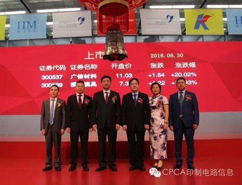 中國的制造業要邁入世界先進行列之中,必須要解決關鍵材料和關鍵設備的瓶頸約束。過去,我們PCB的重要材料油墨嚴重依賴進口,阻礙了我們邁向世界先進的進程。今天,中國研發、生產油墨的廣信股份成為中國第一家上市的油墨企業,可慶可賀!這不僅是廣信公司的大喜事,也是我們中國電子電路行業的大喜事!