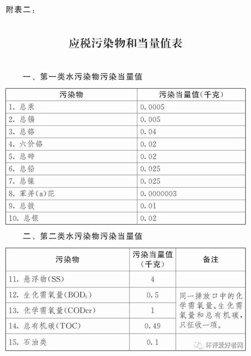 (二)應(yīng)稅水污染物按照污染物排放量折合的污染當(dāng)量數(shù)確定;