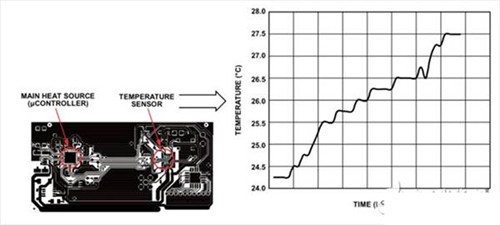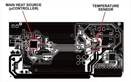 如圖3所示,使用如下技巧可以確保溫度傳感器能夠跟蹤并精確測量PCB溫度和主要的熱源。