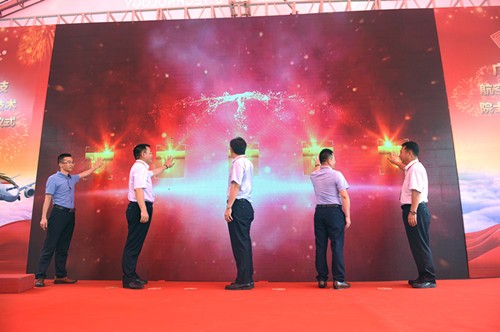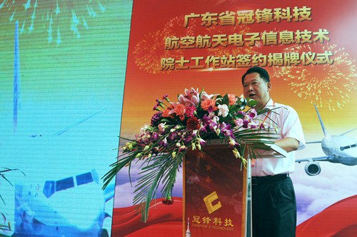 陳志杰院士、尚忠副市長、朱國城書記、盧育輝秘書長、林能文董事長共同為廣東省冠鋒科技航空航天電子信息技術(shù)院士工作站揭牌。