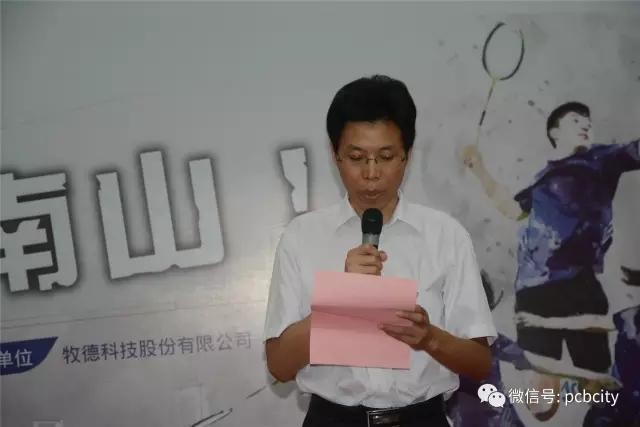 “ 今天,第四屆“牧德杯”羽毛球聯(lián)誼賽在這里隆重舉行。受GPCA邱醒亞會(huì)長(zhǎng)特別委派,謹(jǐn)代表廣東電路板行業(yè)協(xié)會(huì)對(duì)本次比賽的如期舉行表示熱烈的祝賀!向參加比賽的各企業(yè)代表團(tuán)和運(yùn)動(dòng)員們表示熱烈的歡迎!向精心組織安排此次賽事的牧德科技、GPCA/SPCA/MPCA工作人員表示衷心的感謝!