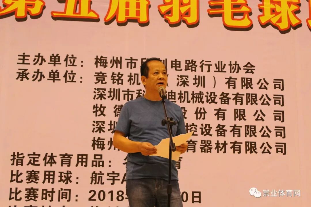 2018年11月10日上午, MPCA第五屆羽毛球聯(lián)誼賽在體育館拉開(kāi)帷幕。本次比賽共有46支隊(duì)伍參賽,分為公開(kāi)組、MPCA組和聯(lián)隊(duì)。8:30,在梅州市印制電路行業(yè)協(xié)會(huì)會(huì)長(zhǎng)謝堅(jiān)生先生的致辭下,比賽正式開(kāi)始。
