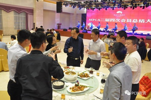 總結(jié)大會(huì)結(jié)束后,大家歡聚一堂,共享晚宴。MPCA會(huì)長(zhǎng)謝堅(jiān)生先生、副會(huì)長(zhǎng)兼秘書(shū)長(zhǎng)葉軍先生、博敏電子股份有限公司董事長(zhǎng)徐緩先生一同為今晚的宴會(huì)祝酒,晚宴拉開(kāi)序幕。