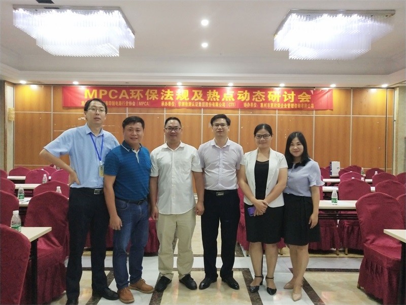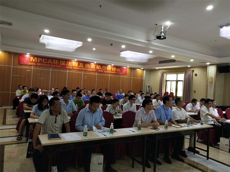 2019年8月24日下午,由梅州市印制電路行業協會(MPCA)主辦、華測檢測認證集團股份有限公司(CTI)承辦、惠州市惠欣榮企業管理咨詢有限公司協辦的“MPCA環保法規及熱點動態研討會”,在梅州市格林豪泰酒店隆重召開,本次專題講座有36家單位80人出席參加。