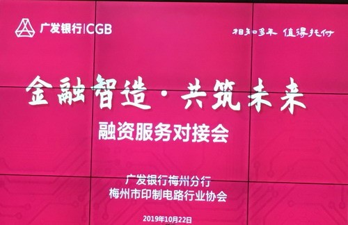 為積極配合政府和園區(qū)打造百億電路板產(chǎn)業(yè)的發(fā)展規(guī)劃,滿足企業(yè)個(gè)性化融資需求,支持園區(qū)龍頭企業(yè)、上市公司做強(qiáng)做大,服務(wù)園區(qū)中型企業(yè)發(fā)展壯大,構(gòu)建銀企“互利雙贏”合作模式,2019年10月22日下午,廣發(fā)銀行梅州分行在白天鵝酒店成功舉辦“金融智造•共筑未來”融資服務(wù)對接會(huì),梅州市工業(yè)和信息化局、東升工業(yè)園區(qū)、梅州市印制電路行業(yè)協(xié)會(huì)會(huì)長等領(lǐng)導(dǎo)和近50名企業(yè)家代表出席了此次活動(dòng)。