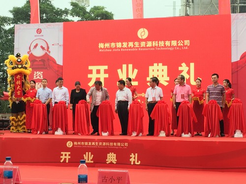 錦發(fā)集團副董事長、錦發(fā)再生資源科技有限公司總經(jīng)理古勁強對到場的嘉賓們表示熱烈的歡迎,并簡要介紹了錦發(fā)再生資源有限公司的發(fā)展歷程,公司秉承“資源再生,循環(huán)無限”的理念,推動梅州地區(qū)循環(huán)經(jīng)濟的發(fā)展。攜手各合作單位,使環(huán)境遠離污染,讓資源得以循環(huán),打造一個美麗、清新的梅州。