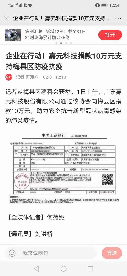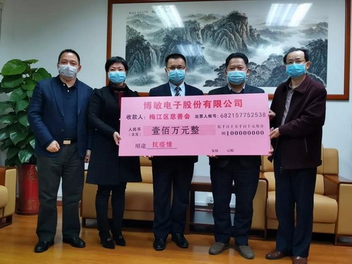 公司董事長/總裁 徐緩先生在采訪中表示:“危難之時,我們公司愿以最大的努力,配合各部門,承擔起制造業的社會責任擔當,全力投入到疫情防控的戰斗中!向奮戰在防疫一線的工作人員致敬!” MPCA名譽會長單位:梅州市志浩電子科技有限公司向梅江區慈善會捐款10萬元;副會長單位:廣東嘉元科技股份有限公司向梅縣區慈善會捐款10萬元;理事單位:梅州市裕維電子有限公司向梅江區慈善會捐款5萬元等等,助力家鄉抗擊新型冠狀病毒感染的肺炎疫情。