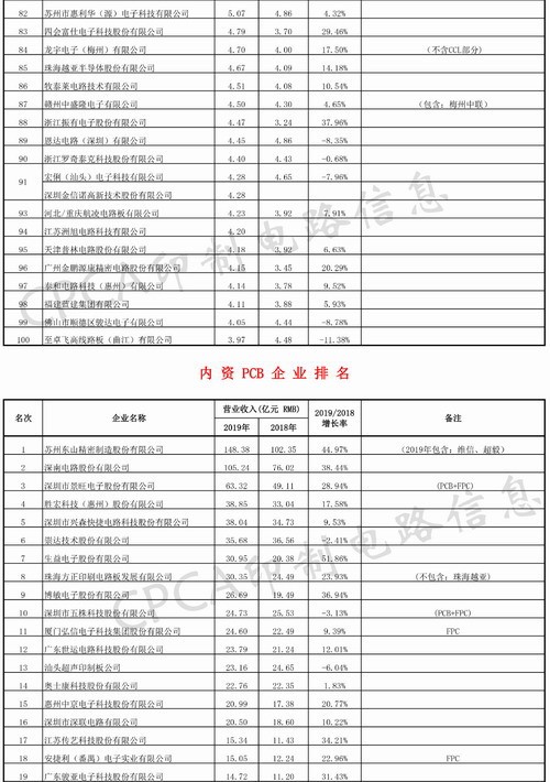 本次排行榜匯集綜合PCB入榜企業100家;內資企業100家;覆銅箔板入榜企業17家;專用材料入榜企業20家;專用化學品入榜企業15家;專用設備和儀器入榜企業13家;環保潔凈入榜企業5家;其中內資企業有59家企業已列入綜合PCB榜,共計211家企業入榜。