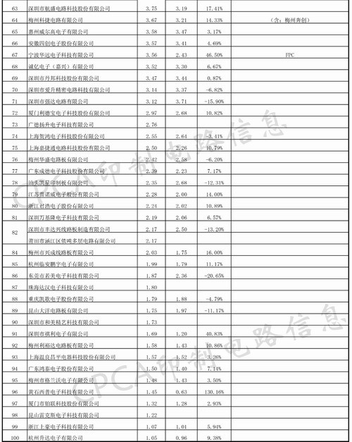 3.2 超五十億企業有7家,分別是:華通電腦、建滔集團、紫翔電子、欣興電子、滬士電子、奧特斯、景旺電子。新增了華通電腦、建滔集團、景旺電子。