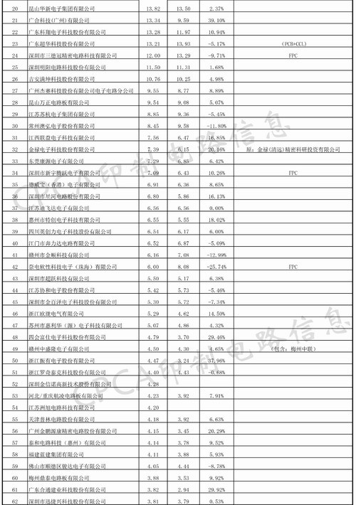 4.4 同比增長15%~20%的企業有9家,分別是:特創電子、勝宏科技、龍宇電子、航盛電路、江西聯益、中富電路、嘉聯益、星河電路、梅州興成;2018年同比增長15%~20%的企業有16家;