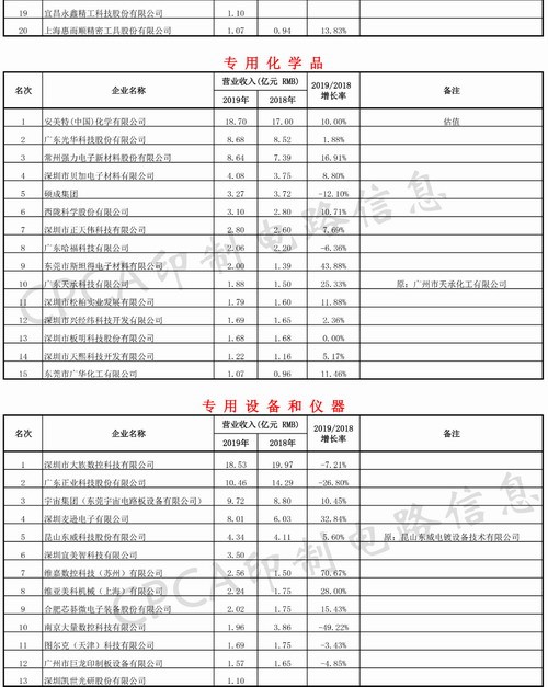 1. 2019年營業收入入榜企業20家,合計營業收入185.59億元人民幣,2018年19家,合計營業收入178.14億元人民幣,2019/2018專用材料入榜企業營業收入同比增長4.18%。
