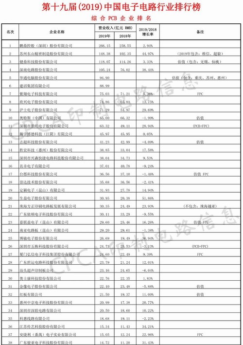 《2019中國電子電路行業排行榜》