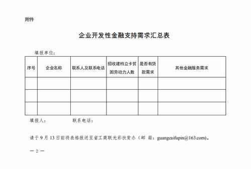 進行摸查統(tǒng)計,并填寫《企業(yè)開發(fā)性金融支持需求匯總表》,于 9 月 13 日前報至