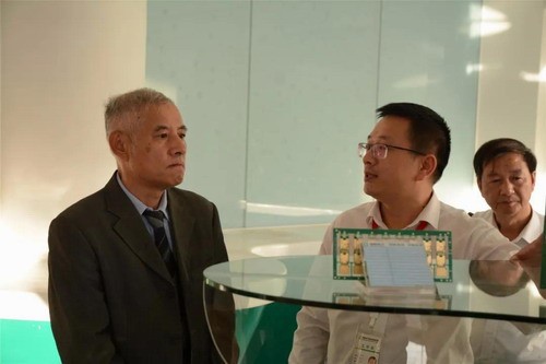 在參觀博敏電子展廳過程中,陳世金總監向辛國勝秘書長一行介紹了博敏電子的優勢產品和工藝水平。