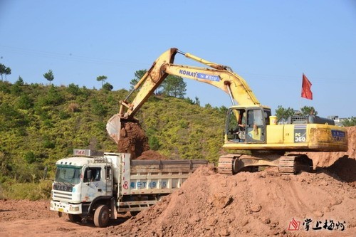 大年初五一大早,記者在梅州綜保區項目建設現場看到,16臺大型挖掘機正在山坡上施工作業,40多輛運輸車在來回穿梭搬運土方。梅州綜保區建設項目經理張榮華介紹,除夕和大年初一兩天的短暫休整后,大年初二一早,全體施工人員按往常的上工時間來到綜保區建設現場,吹響新一輪建設號角。