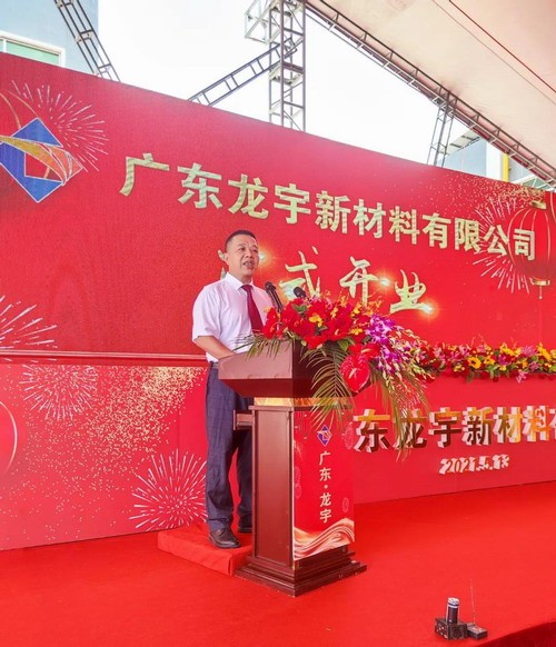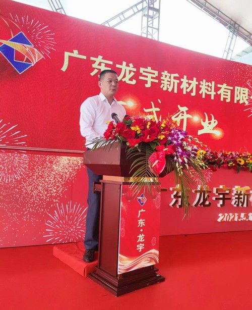 首先由龍宇集團董事長陳建新先生致辭。陳總首先代表龍宇集團全體同仁向各位領導和來賓表示熱烈的歡迎和衷心的感謝。簡單介紹了廣東龍宇新材料有限公司后,陳總表示龍宇覆銅板新廠的投產,將為打造每月200萬張高端覆銅板奠定方向,新廠的投產既是龍宇集團發展的里程碑,也是企業做大做強的新起點。陳總說經董事會研究,將會對廣東龍宇的總投資額從5億元加大到10億元,陳總也表示會繼續為產業新發展努力作為,使企業早日步入高速發展的快車道!