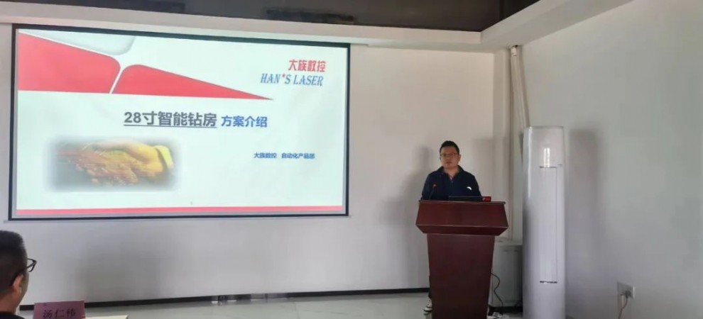 交流會(huì)正式開始,進(jìn)入第一個(gè)課題,由大族公司資深工程師王雷詳細(xì)介紹28寸智能鉆房、黑燈工廠優(yōu)化管理,以及自動(dòng)化鉆機(jī)的新增功能等。
