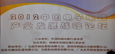 由中 國 印 制 電 路 行 業 協 會(CPCA)主辦、梅州市印制電路行業協會(MPCA)協辦的2012中國電子電路產業發展戰略論壇于9月20日在梅州市雁南飛茶田景區圍龍大酒店成功召開,會議當天吸引了一百多位業內精英參加。梅州市副市長陳建青、CPCA理事長由鐳|、CPCA秘書長王龍基、(MPCA)會長劉燕平女士等人均出席了此次論壇。